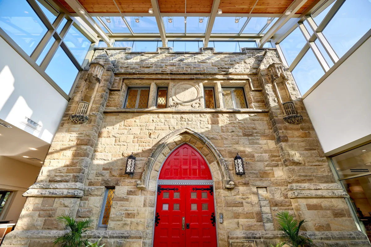 Another tricky renovation involved the doors. The original red wooden doors and the transoms above them were considered a trademark of the church, but they created architectural and experiential problems.